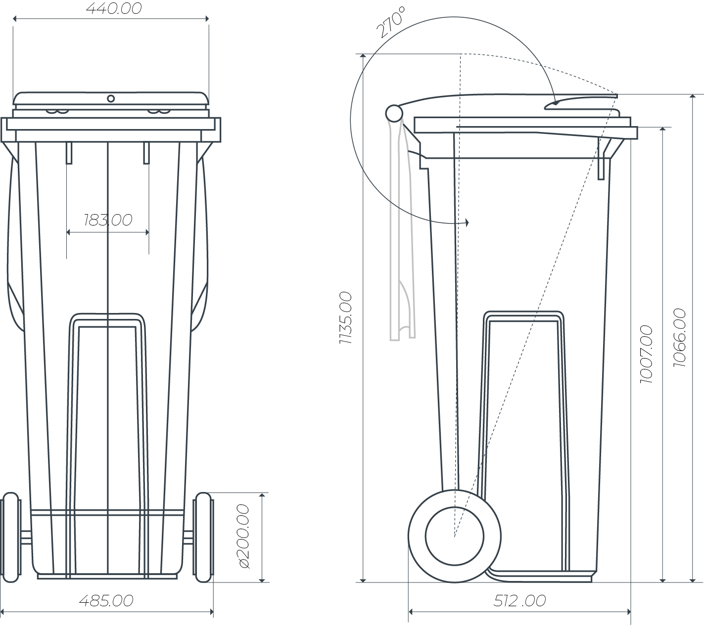 Der Container ist mit einem schalldämpfenden System am Deckel ausgestattet.