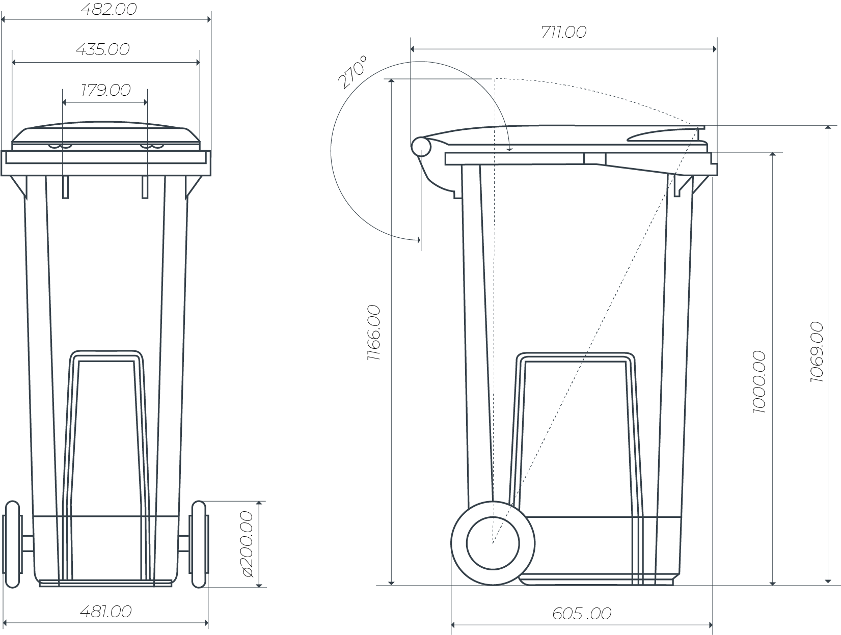 Das Doppeldeckelsystem erleichtert dem Benutzer die Abfallentsorgung, wenn der Behälter schwer zugänglich ist. Die Öffnung an der Vorder- und Rückseite macht den Behälter ergonomischer und einfacher zu handhaben.